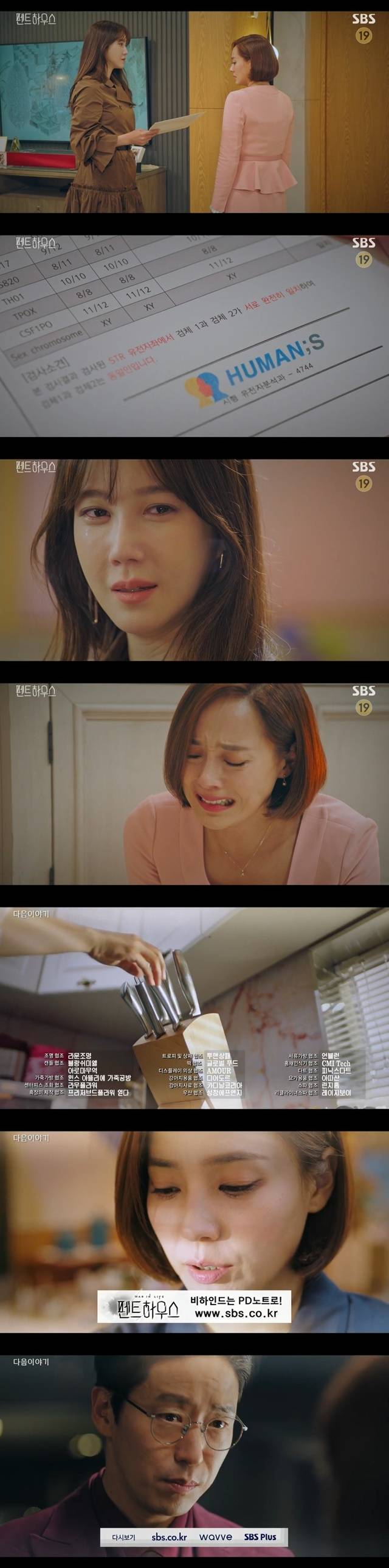 12월 29일 방송된 SBS 월화드라마 '펜트하우스' 19회(극본 김순옥/연출 주동민)에서 심수련(이지아 분)은 오윤희(유진 분)에게 유전자 검사지를 내밀었다.