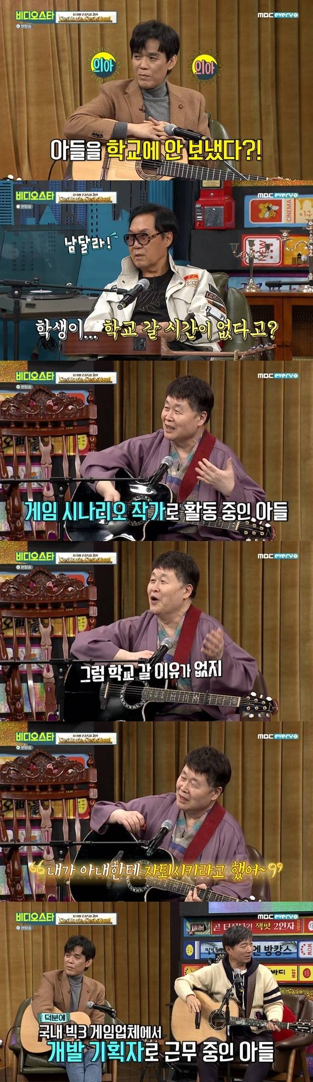제작진은 자막으로 그렇게 고등학교를 자퇴한 송창식 아들은 현재 게임 개발자로 일하고 있다고 부연 설명했다. (사진=MBC에브리원 ‘비디오스타’ 캡처)
