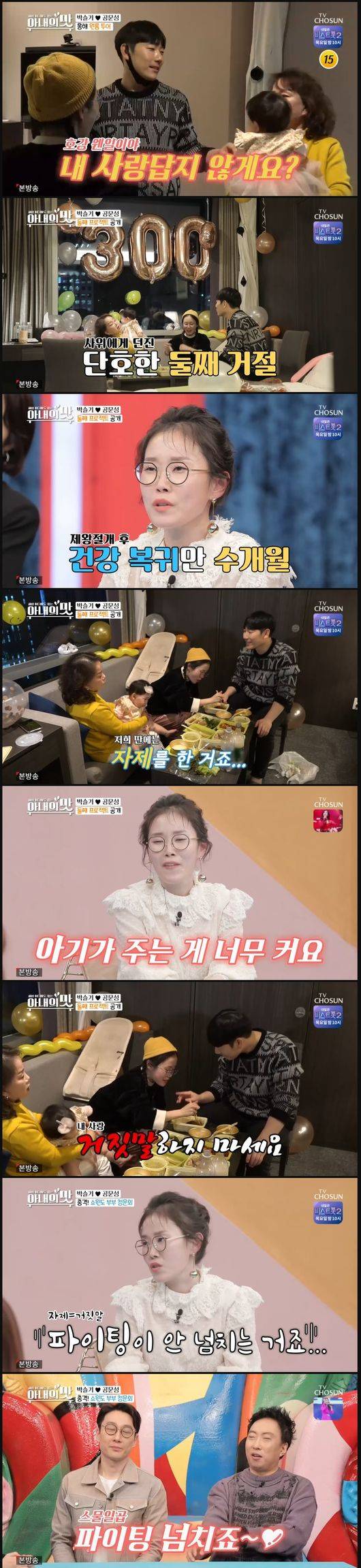 먼저 이날 공문성은 박슬기母인 장모와 함께 이벤트를 준비했다. 바로 딸 소예가 300일이 됐기 때문. 공문성은 장모에게 "우리 둘째 낳는거 어떠세요?"라고 물었다.