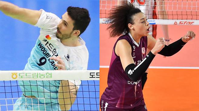 프로배구 남자부 우리카드의 외국인 선수 알렉스 페헤이라(등록명 알렉스)와 여자부 KGC 인삼공사의 발렌티나 디우프(등록명 디우프)가 나란히 V리그 3라운드 최우수선수(MVP)로 선정됐습니다.