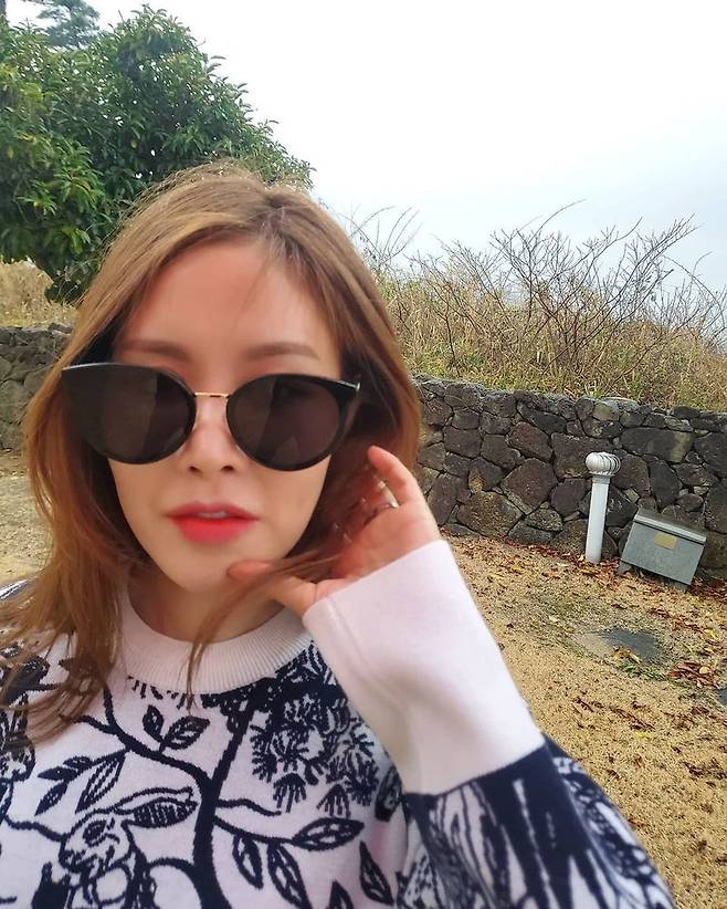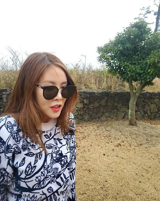 공개된 사진 속 채리나는 선글라스를 착용한 채 추위에 떨고있다.