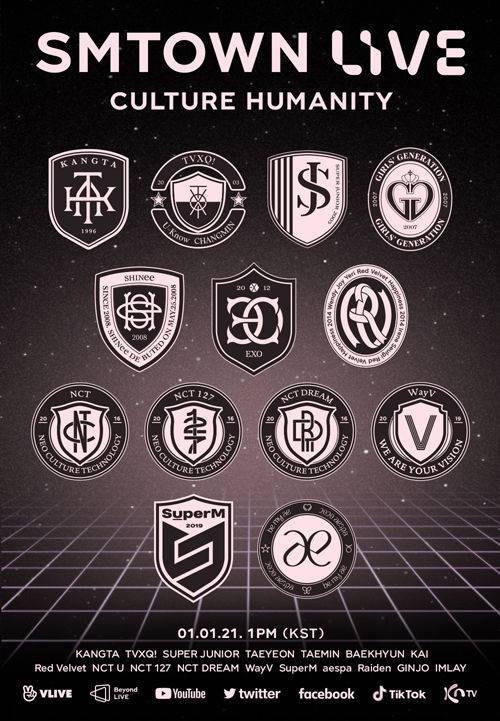 SM 엔터테인먼트는 2021년 첫날, 1월 1일 오후 1시부터 'SM타운 라이브'를 전세계에 무료로 온라인 중계합니다. 10년 이상 활동해온 동방신기, 슈퍼주니어를 비롯해, 소녀시대 태연, 샤이니 태민, 엑소 백현 카이, 레드벨벳, NCT, 슈퍼엠의 무대도 마련됩니다. 가상 현실 멤버가 포함된 그룹으로 최근 데뷔한 걸그룹 '에스파'도 참여합니다.