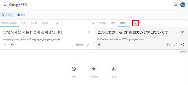 구글 번역으로 문장 번역하기