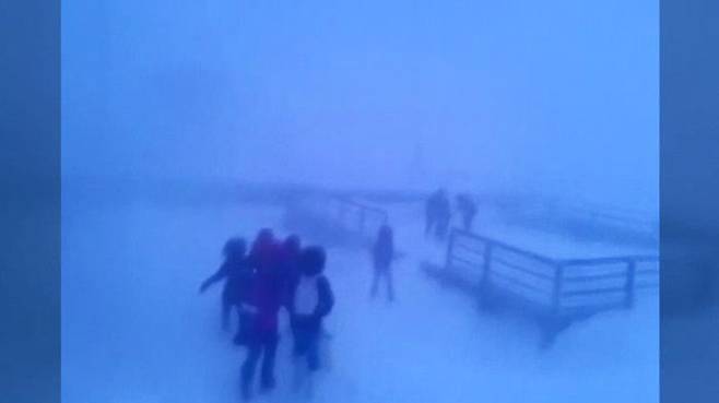 어른들도 발걸음을 옮기기 힘들 정도의 눈바람이 몰아치는데 어린 학생들이 서로 의지하면서 앞으로 나아가는 모습입니다. 세계에서 가장 추운 마을로 알려져 있는 러시아의 오이먀콘입니다.