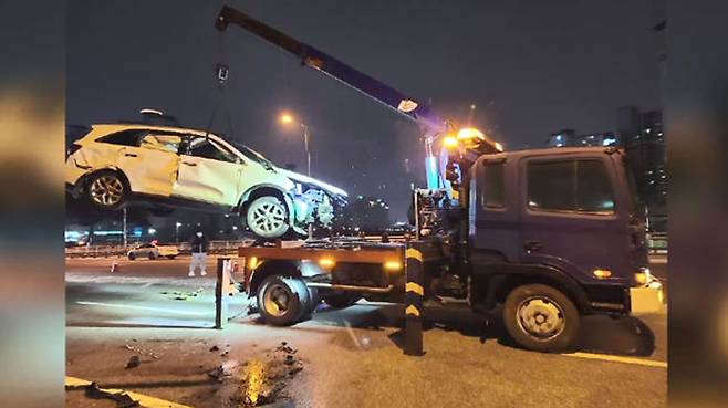 도로에 불꽃이 튈 정도로 큰 충격이었습니다.