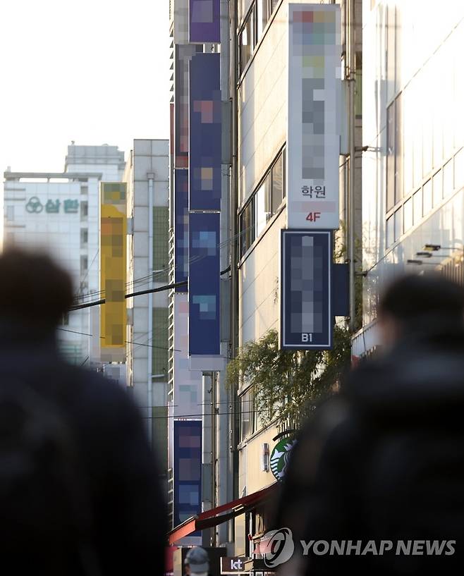 (서울=연합뉴스) 류영석 기자 = 정부가 수도권 학원·교습소에 동시간대 교습 인원 9인 이하 운영을 허용한 가운데 3일 오후 서울 강남구 대치동 학원가의 모습. 2021.1.3