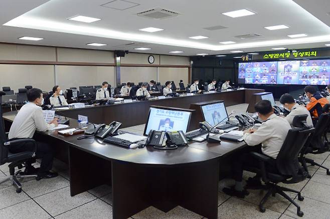 경기도 소방재난본부는 4일 본부 청사 영상회의실에서 본부 과장과 주무팀장, 관할 소방서장 등이 참석한 가운데 소방관서장 영상회의를 개최했다고 밝혔다.