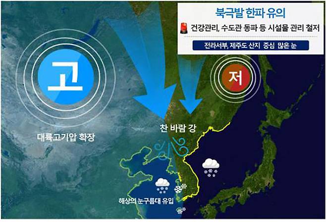이에 따라 대기 상·하층의 매우 찬 공기가 우리나라로 밀려들며 주말까지 전국에 한파특보가 발표될 예정입니다.
