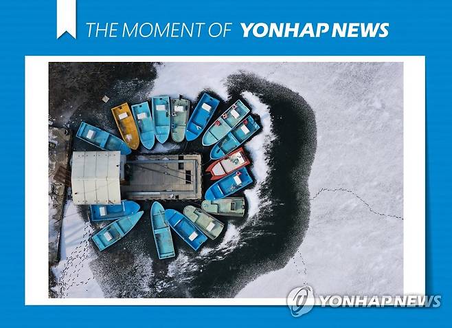 (안성=연합뉴스) 홍기원 기자 = 소한을 하루 앞둔 4일 오후 경기도 안성시 금광저수지 낚싯배 주변이 꽁꽁 얼어 있다. 2021.1.4 [THE MOMENT OF YONHAPNEWS]