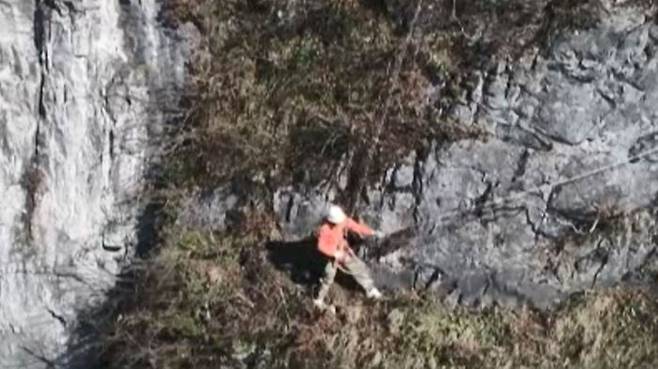 중국에서는 400미터 높이 절벽에서 쓰레기를 줍는 스파이더맨이 등장했습니다.