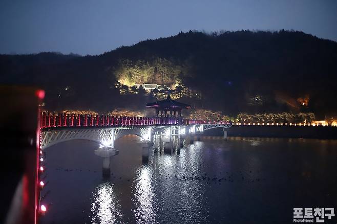 도착하여 막 다리에 올라서자 기다렸다는 듯 등을 밝힌다.