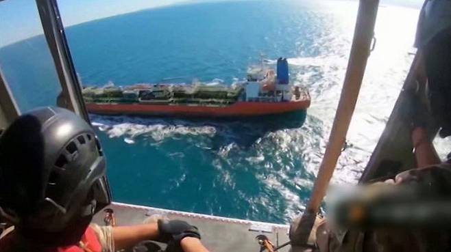 이란 혁명수비대는 무선 교신으로 "선박 검사를 해야 한다. 배 속도를 낮춰라"며 고속정을 타고 유조선으로 접근했습니다.