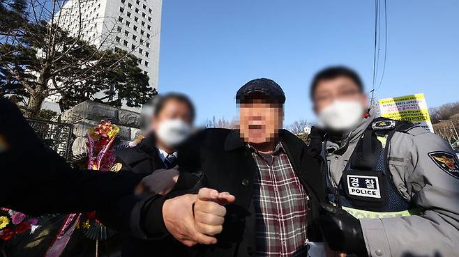오늘(5일) 오전 9시 52분쯤, 서울 서초구 대검찰청 앞에 늘어선 윤석열 검찰총장 응원 화환에 한 70대 남성이 인화물질을 뿌리고 불을 붙였습니다.