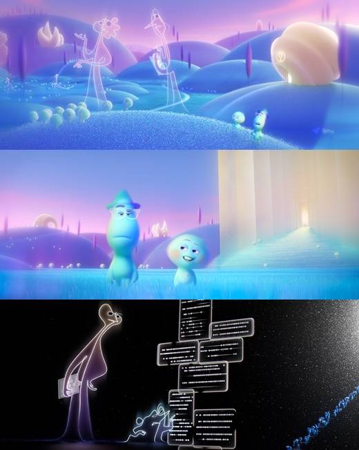 모든 영혼들이 '태어나기 전 세상'에서 멘토링을 받아 각자의 성격, 가치관, 열정을 찾고 지구에 갈 준비를 마치면 비로소 태어나게 된다는 것. 꼬마 영혼들은 자신의 멘토의 삶을 들여다보고 그곳에서 받은 특별함을 통해 자신만의 불꽃을 찾을 수 있는 공간인 '당신의 전당'과 지구의 모든 것을 경험하고 영감을 주는 공간인 '모든 것의 전당'을 거치게 된다. 이처럼 '소울'에선 '태어나기 전 세상', 이와 반대로 지구를 떠난 영혼들이 향하는 '머나먼 저세상'까지 기상천외한 공간들이 펼쳐지는데, 디즈니·픽사만 할 수 있는 무한한 상상력으로 가득 차 놀라움을 안긴다.