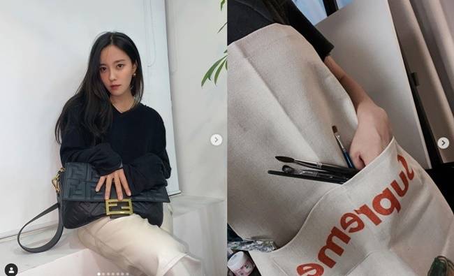 사진 속 효민은 야무지게 앞치마를 두르고 그림 그리기에 나선 모습. 주머니에 꽂힌 여러 개의 붓이 그림을 향한 그녀의 열정을 고스란히 보여준다.
