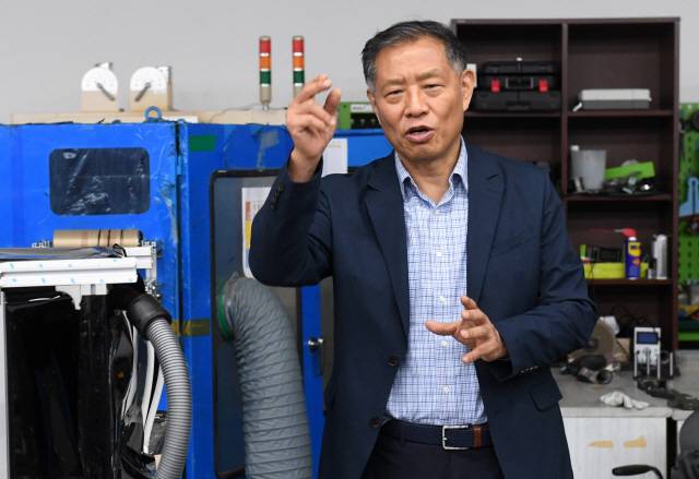 그가 한양대 산단장과 기술지주 대표를 맡은 지 한 달 뒤인 지난해 4월 창업 전선에 출사표를 던진 것도 이 때문이다. 그는 “연구 주제 중 하나가 수소 탱크인데 나이 60을 넘겨서도 실험실 제조업 창업에 성공할 수 있다는 것을 보여주고 싶었다”며 “제조업 창업이 가장 힘든데 다른 교수들에게 자극을 줘야겠다는 결심이 들었다”고 강조했다. 이어 “아직도 ‘교수가 무슨 창업이냐’는 문화가 남아 있는데 등록금이 13년째 동결돼 대학 재정도 녹록지 않은 상황에서 과거 방식대로 상아탑에만 안주하면 되겠느냐”고 말하며 주먹을 불끈 쥐었다. 지난 10개월가량 산단과 기술지주를 속속들이 파악하고 전략을 짠 경험을 토대로 큰 틀에서 산학 협력과 교원 창업을 독려하면서 직접 창업 롤모델이 되겠다는 게 그의 포부다. /고광본 선임기자 kbgo@sedaily.com /사진=성형주기자