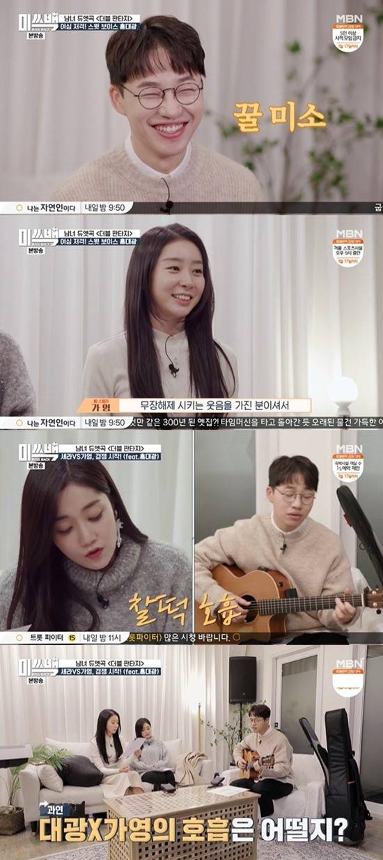 5일 방송된 MBN 예능 '미쓰백'에서는 혼성 듀엣곡 경연이 진행된 가운데 홍대광이 파트너로 깜짝 등장했다.