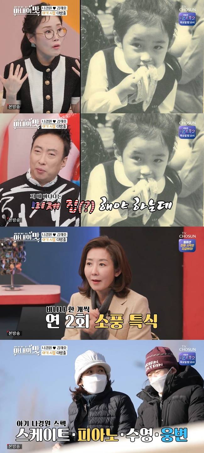 이에 대해 나경원은 "저 바나나는 일 년에 두 번 봄 소풍, 가을 소풍에 1번씩만 먹을 수 있었다. 아버지가 오죽하면 저걸 사진 찍어놨겠냐. 근데 저땐 (외모가) 좀 괜찮았네"라고 말해 웃음을 안겼다. (사진=TV조선 '아내의 맛')