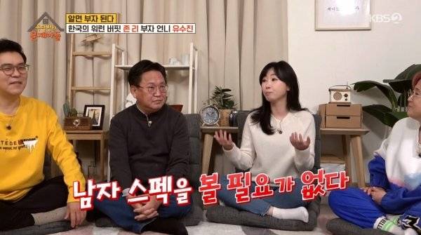 이어 유수진 역시 “나는 여자들보다 남자들이 더 싫어한다. 내가 말을 세게 해서 ‘남자 얼굴만 봐라’, ‘내가 벌어서 잘 살 수 있으니 남자 스펙을 볼 필요가 없다’고 한다. 김숙 언니와 같은 결”이라며 “왜 안되는 것만 생각하는지, 부정적인 것만 보는지 모르겠다”고 안타까운 김경을 밝혔다.