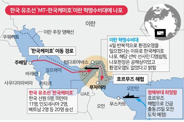 이란 혁명수비대가 지난 4일 호르무즈 해협 인근 공해에서 한국 유조선 케미호를 강제 나포했다.