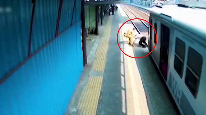 그렇습니다. 인도에서 있었던 일인데요, 철길을 무단횡단하던 남성이 가까스로 사고를 피하는 모습이 포착됐습니다.