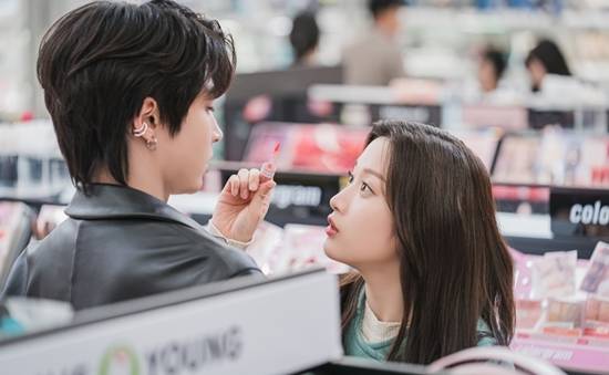 이 가운데 ‘여신강림’ 측이 6일(수) 방송을 앞두고 문가영과 황인엽의 데이트 스틸을 공개해 이목을 집중시킨다. 공개된 스틸 속 두 사람은 마치 연인들처럼 화장품 코너를 구경하며 쇼핑 데이트를 즐기는 모습으로 눈길을 끈다. 이때 문가영은 틴트 색을 보여주려는 듯 황인엽을 바라보며 초롱초롱한 눈망울을 빛내 설렘을 퍼뜨린다.
