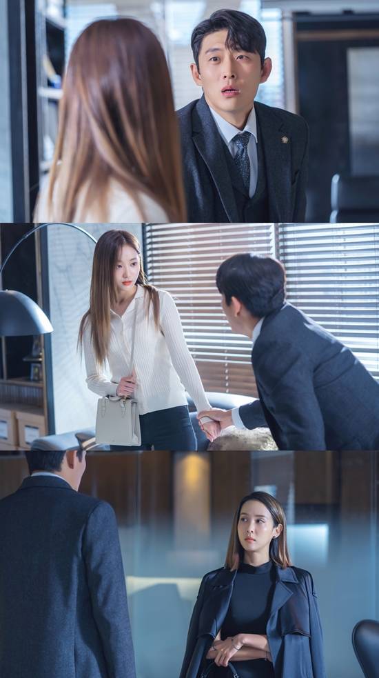 공개된 사진 속에는 남편 우성의 사무실을 찾은 여주의 모습이 담겨 있다. 올 블랙으로 차려입은 여주가 팔짱을 낀 채 정면을 응시하고 있다. 같은 시각, 우성의 사무실에는 우성을 찾아온 미래가 있는 상황. 우성을 향한 여주의 ‘바람 센서’에 빨간 경고등이 켜진 듯 기막힌 타이밍에 등장한 여주의 모습은 마치 바람피운 남편을 잡으러 온 ‘저승사자’ 같은 모습이다.