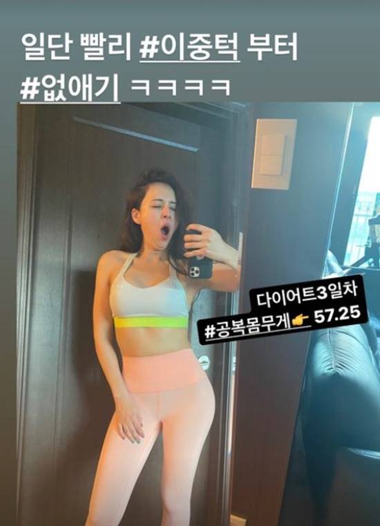 "공복 몸무게 57kg"..에바, 다이어트 3일차 '이중턱 자랑' [★해시태그]