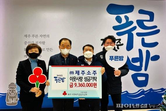 [제주=좌승훈 기자] ㈜제주소주는 6일 제주사회복지공동모금회에 소외계층을 돕기 위한 성금 936만원을 전달했다.