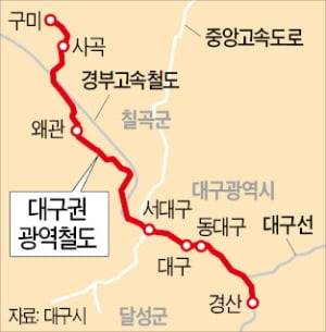경북 구미~칠곡~대구~경산을 잇는 대구권 광역철도가 2023년 개통된다.