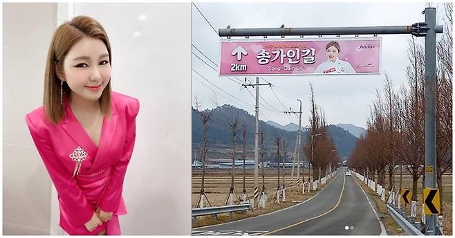 앞서 송가인은 지난해 한 예능 프로그램에서 자신의 이름을 딴 길과 공원이 조성됐다며 뿌듯함을 전한 바 있다.