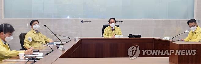 (서울=연합뉴스) 김희겸 행정안전부 재난안전관리본부장이 6일 오후 세종시 정부세종2청사 중앙재난안전상황실에서 겨울철 대설ㆍ한파 관계기관 긴급 대책회의를 하고 있다. 2021.1.6