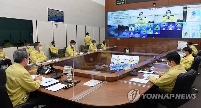 (서울=연합뉴스) 김희겸 행정안전부 재난안전관리본부장이 6일 오후 세종시 정부세종2청사 중앙재난안전상황실에서 겨울철 대설ㆍ한파 관계기관 긴급 대책회의를 하고 있다. 2021.1.6