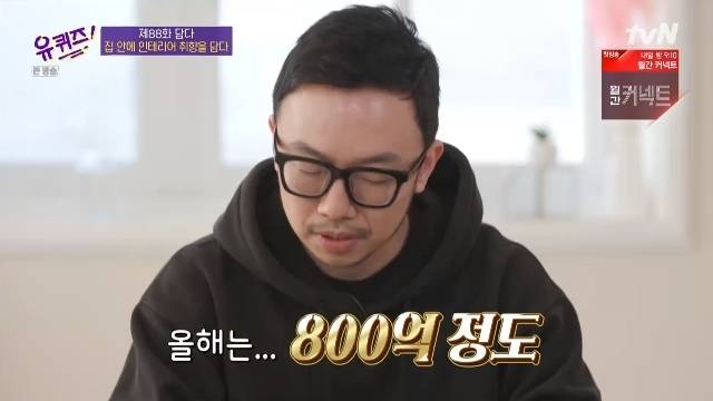 이승재 대표는 매출에 대해 "올해는 한 700~800억 정도. 지금은 200분 되는 팀원들과 함께하고 있다"고 밝히며, 직원 복지에 대해선 "꾸미기 지원금이 있다. 1년에 60만 원 씩 준비해 드리는데 서비스를 직접 경험하고 공간이 바뀌는 걸 느껴야 유저도 공감할 수 있다"고 말했다. (사진=tvN '유 퀴즈 온 더 블럭' 캡처)
