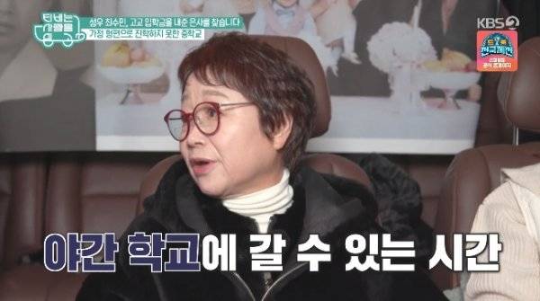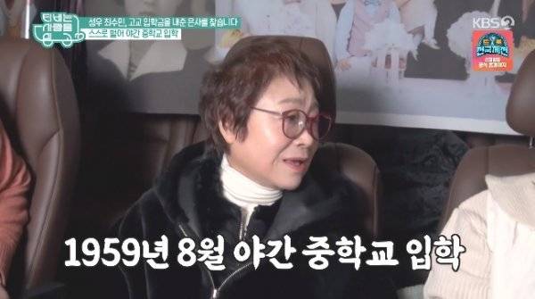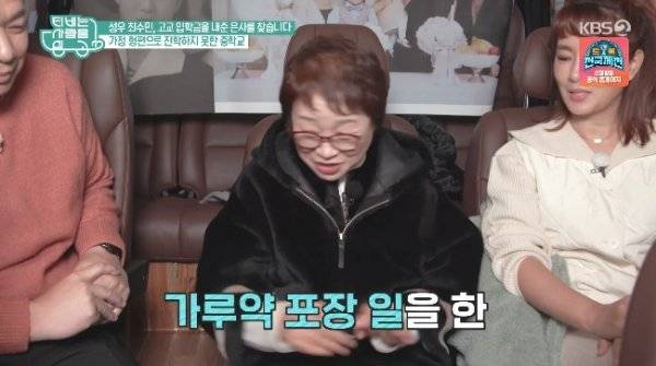 이어 최수민은 “초등학교 졸업 후에 학교를 못 갔다. 그런데 도저히 못 견디겠더라. 교복 입은 아이들과 친구들이 돌아다니는 것이 부러웠다. 그 때 제약 회사에 들어가 가루약을 포장하는 일을 하면서 돈을 모았다. 그 때 8시에 출근을 하고 5시에 퇴근을 해서 입학금을 마련해 야간학교를 갔다”고 당시의 상황을 설명했다.
