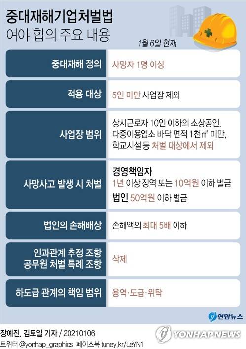 [그래픽] 중대재해기업처벌법 여야 합의 주요 내용