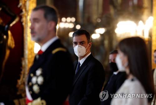 epa08922149 Spain's King Felipe VI (L) gives a speech before Spanish Prime Minister Pedro Sanchez (C), during the so called 'Pascua Militar', a military celebration of Epiphany Day, at the Royal Palace in Madrid, Spain, 06 January 2021. The Pascua Militar is held every year on Epiphany Day since the 18th century to celebrate the reconquest of Menorca from the British Empire back in 1782. EPA/J. J. GUILLEN / POOL