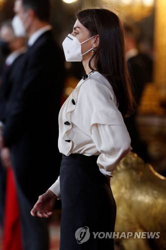 epa08922167 Spain's Queen Letizia attends the so called 'Pascua Militar', a military celebration of Epiphany Day, at the Royal Palace in Madrid, Spain, 06 January 2021. The Pascua Militar is held every year on Epiphany Day since the 18th century to celebrate the reconquest of Menorca from the British Empire back in 1782. EPA/J. J. GUILLEN / POOL