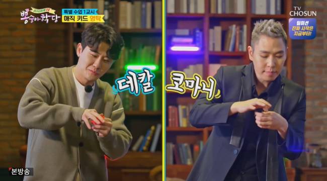 영탁은 유쾌한 표정 연기까지 선보이며 이은결과 함께 마술을 펼쳐 멤버들을 깜짝 놀라게 했다.