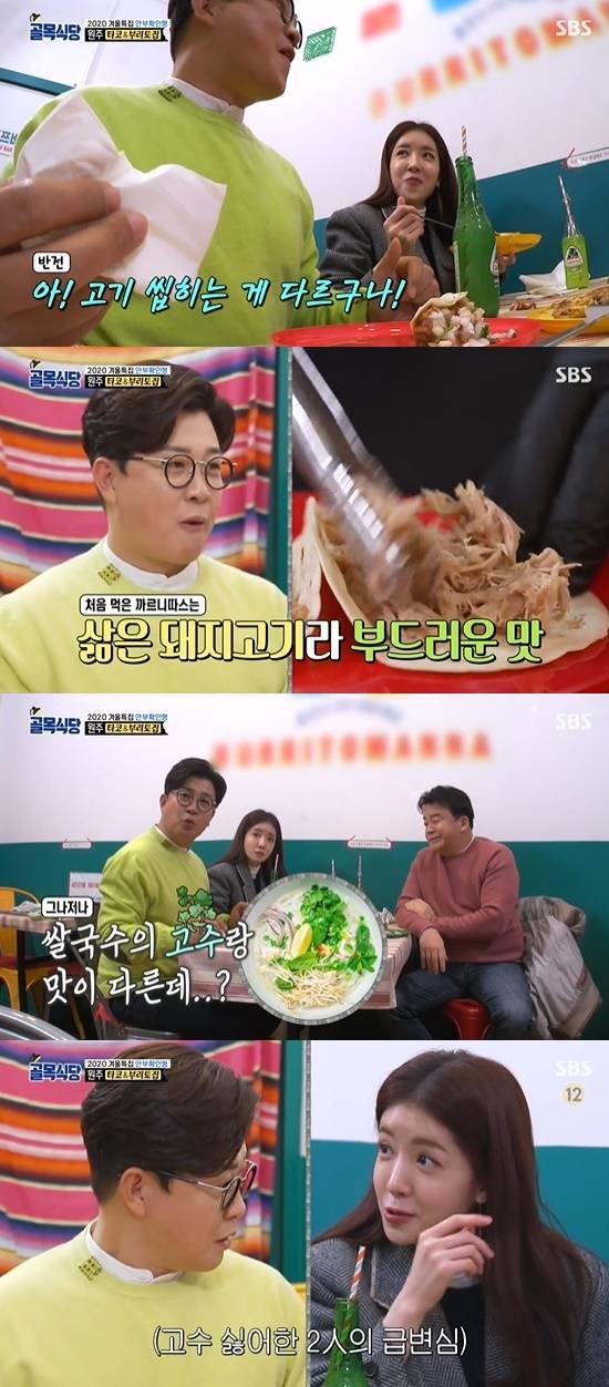 '골목식당' 김성주와 정인선이 원주 타코집에서 고수에 빠졌다.