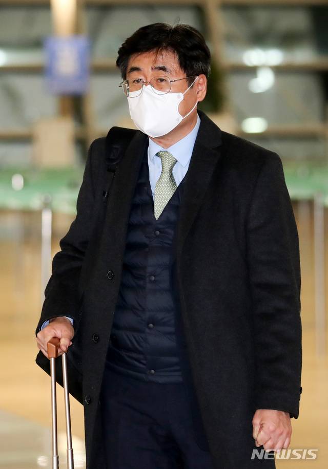 [인천공항=뉴시스]김선웅 기자 = 이란에 나포·억류된 한국 국적 선박과 선원들의 석방 문제 등을 협상할 고경석 외교부 아프리카중동국장 등 외교부 대표단이 6일 오후 인천국제공항을 통해 이란으로 출국하고 있다. 2021.01.06. mangusta@newsis.com