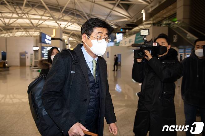 (인천공항=뉴스1) 유승관 기자 = 고경석 외교부 아프리카중동국장이 6일 밤 이란에 억류 중인 선박과 선원 문제를 논의하기 위해 출국하고 있다.