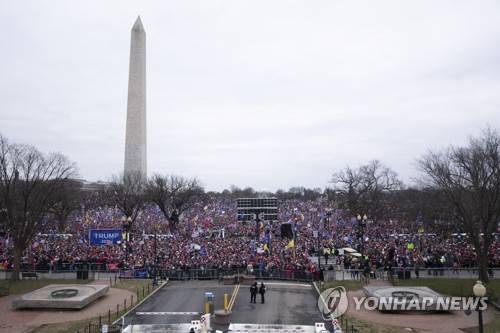 epa08922386 Thousands of supporters of US President Donald J. Trump gather on the National Mall outside a rally on the Ellipse near the White House in Washington, DC, USA, 06 January 2021. Right-wing conservative groups are protesting against Congress counting the electoral college votes. Dozens of state and federal judges have shot down challenges to the 2020 presidential election, finding the accusations of fraud to be without merit. EPA/MICHAEL REYNOLDS