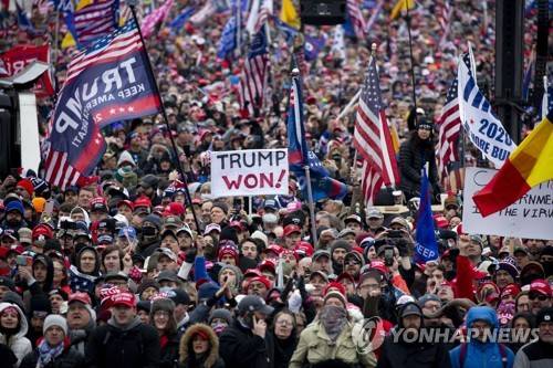 epa08922381 Thousands of supporters of US President Donald J. Trump gather on the National Mall outside a rally on the Ellipse near the White House in Washington, DC, USA, 06 January 2021. Right-wing conservative groups are protesting against Congress counting the electoral college votes. Dozens of state and federal judges have shot down challenges to the 2020 presidential election, finding the accusations of fraud to be without merit. EPA/MICHAEL REYNOLDS