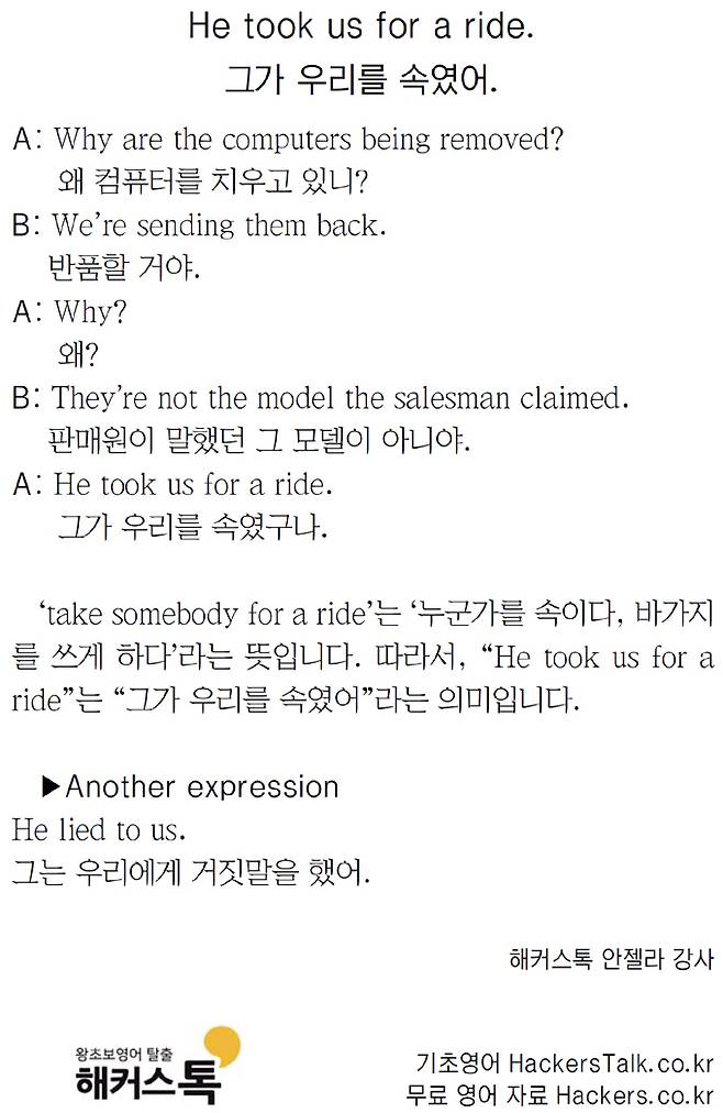 [왕초보영어탈출 해커스톡] 하루 1분 기초 영어회화 (1월 7일)