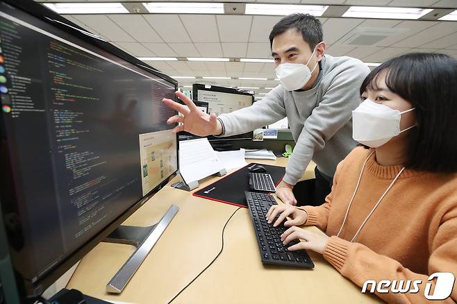 개발된 4개 기술은 딥러닝 음성합성(P-TTS), E2E 음성인식, 무빙 픽처(Moving Picture), AI 기반 로봇 고장 진단 기술이다. 여기서 만들어진 4개 연구 성과 가운데 3개는 KT 사업의 핵심기술로 활용하고, 1개는 현대중공업그룹의 산업 현장에 적용할 예정이다. 서울 서초구 KT융합기술원에서 연구원들이 사진을 동영상으로 가공하는 ‘AI 무빙 픽처’ 기술을 시연해 보고 있다. (KT 제공) 2021.1.7/뉴스1