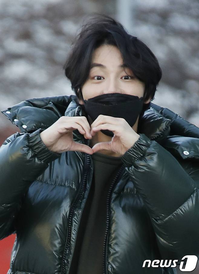 (서울=뉴스1) 권현진 기자 = 배우 윤시윤이 7일 오전 서울 목동 SBS에서 열린 SBS 라디오 파워FM '김영철의 파워FM'을 마치고 방송국을 나서며 인사를 하고 있다. 2021.1.7/뉴스1