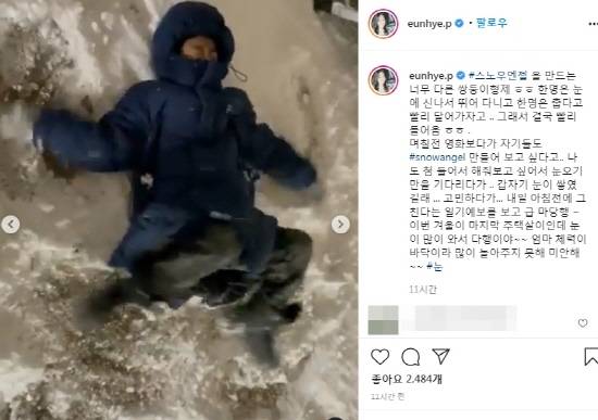 영상 속 박은혜의 쌍둥이 아들은 눈이 쌓인 바닥에 누워 헤엄을 치는 포즈를 취하고 있다. 사진에서는