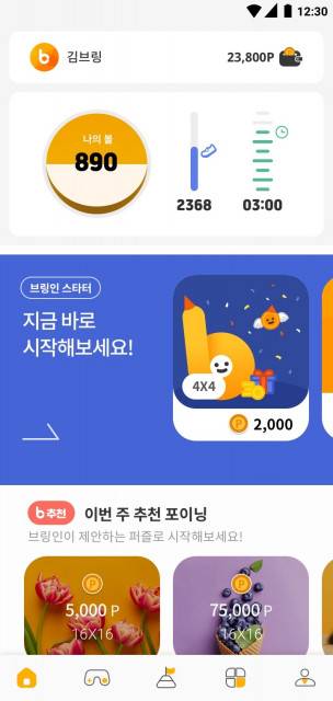 브링인 서비스는 기존의 상업성 광고 위주의 보상 앱과 달리 사용자가 평소처럼 핸드폰을 사용하거나 걷기만 해도 자동으로 볼이 모아지고(쌓이고), 이렇게 모아진 볼을 이용해서 여러가지 상금(포인트)이 걸려있는 퍼즐을 맞춰 상금을 획득하는 앱이다. 만 12세 이상이면 누구나 손쉽게 이용할 수 있다.