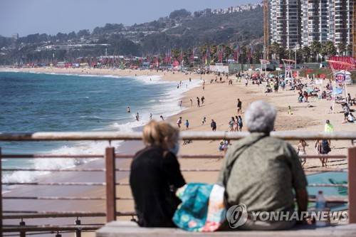 epaselect epa08923803 People gather on one of the beaches of Vina del Mar, Chile, 06 January 2021. EPA/Alberto Valdes